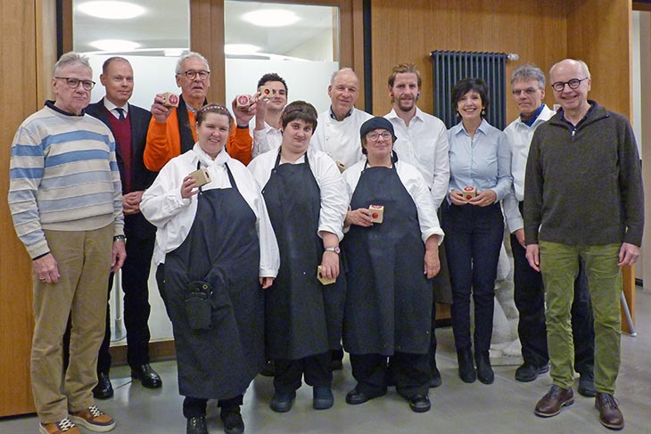 Freiburg. Als ein Zeichen des Dankes und der Anerkennung für den freundlichen und zuvorkommenden Service und die gute Küche im Café Inklusiv im Münsterforum überreichten Joachim Jäckle (Präsident Lions Club), Werner Ueberrhein (Vorsitzender des Lions Club Hilfswerks) und Gerhard Leon (Öffentlichkeitsarbeit) den Mitarbeiterinnen und Mitarbeitern des inklusiven Teams Weihnachtskugeln aus der diesjährigen Aktion mit Nils Petersen.