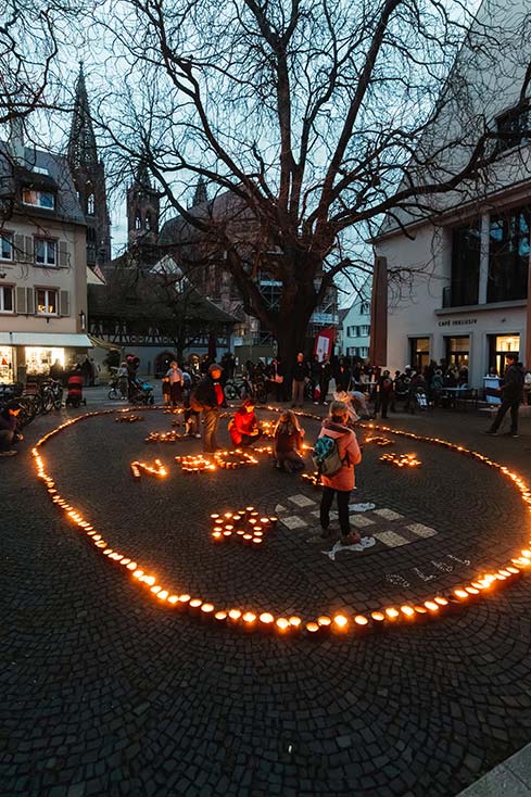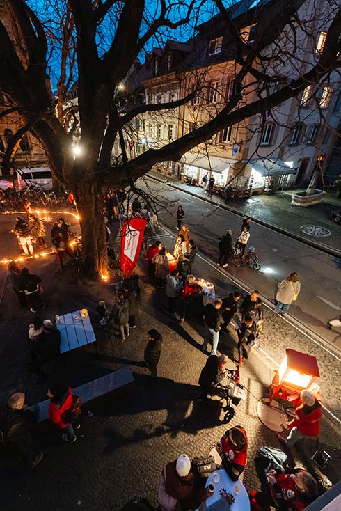 Freiburg. Für stimmungsvolles Licht in der Freiburger Innenstadt sorgte auch in diesem Jahr wieder die gemeinsame „Eine Million Sterne“-Aktion des Caritasverbandes Freiburg-Stadt und Caritas international. Trotz des Regenwetters entzündeten zahlreiche Passantinnen und Passanten eine Kerze für Menschen in Not und spendeten für soziale Projekte in der Region sowie für Hilfsmaßnahmen in Mexiko.